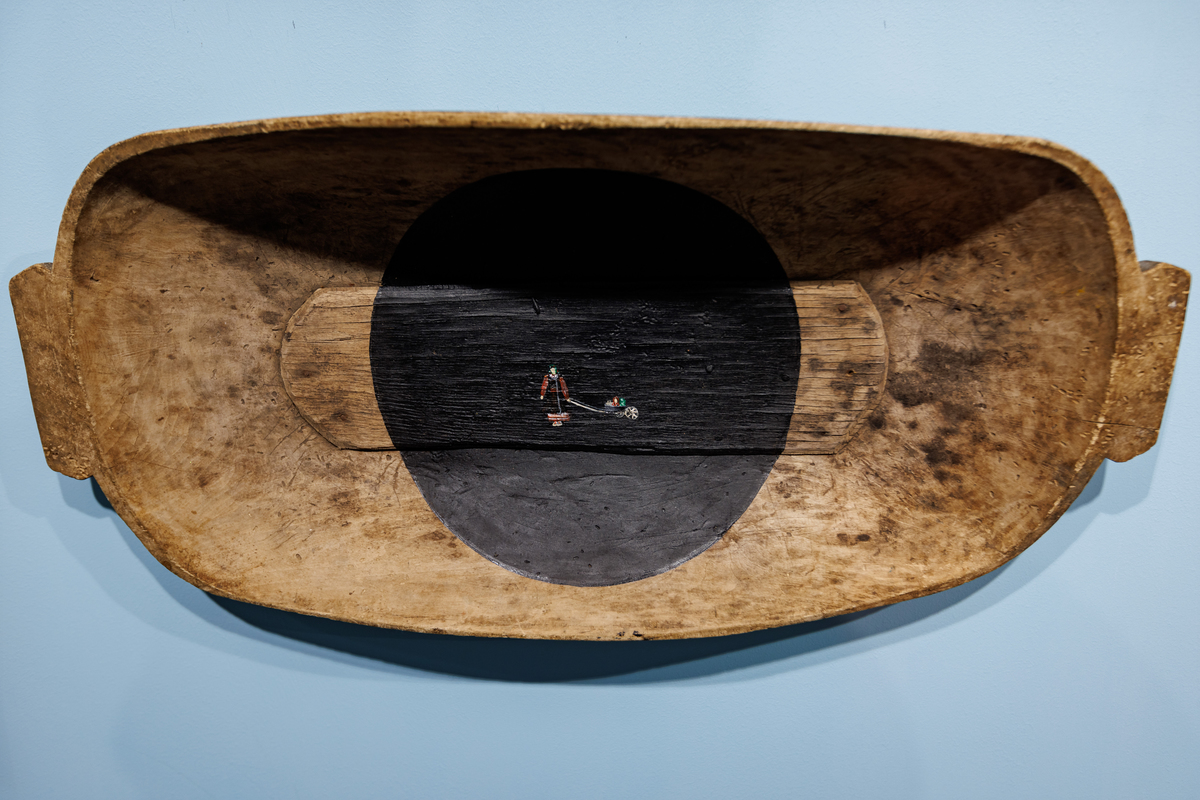 Эта выставка — попытка проследить путь финно-угорского этнофутуризма от основополагающих экспериментов Ефимова до авторов, преданных теме национальной идентичности сегодня. Максим Агафонов яркий представитель актуального финно-угорского искусства. В необычной форме он репрезентует в своем творчестве культурный код своего народа. Максим вырос в постепенно исчезающем селе Квардавозь. Он дает вторую жизнь предметам утвари, оставшимся от его дедушек и бабушек, соседей по поселку. Художник внедряет на поверхность миниатюрные образы маленьких удмуртов, национальные узоры и орнаменты. Таким образом, через предметы из прошлого Агафонов создает современные произведения и переосмысляет богатое культурное наследие финно-угров.