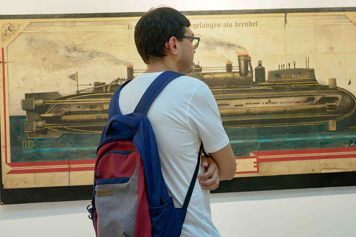 — У меня свой подход к коллажам. Их можно делать по-разному, а я стараюсь представить произведение так, как будто оно из прошлого — XIX – начала XX века. Мне интересно обратиться к классике через современные возможности. Меня впечатляют предметы из прошлого. Когда вы увидите паровоз или военную технику времен Первой мировой войны, она впечатлит вас своими заклепками и листами. Это брутальность и мощь, которую создавали такие же брутальные и мощные люди. Может, современный человек и не способен управлять этими машинами, потому что он анатомически более утончен.