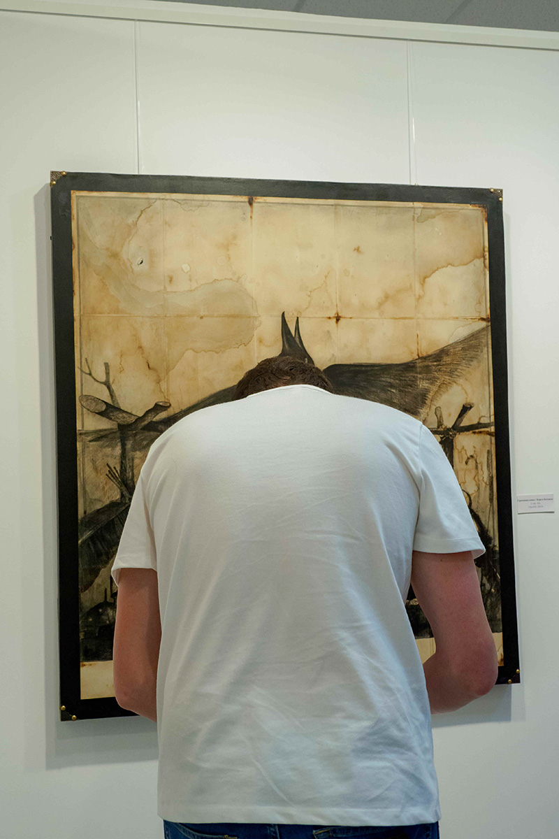 — Да. Графика требует очень большой концентрации. Тут невозможно отделаться какими-то спецэффектами. Допустим, мастихином можно мазнуть — и будет всегда красиво, а графика требует четкого мышления, твердой руки и знания анатомии. Это стало ценным для меня — смогу ли я создать такое произведение, где на первый план выйдет именно линия и уровень владения ею будет очень заметен.