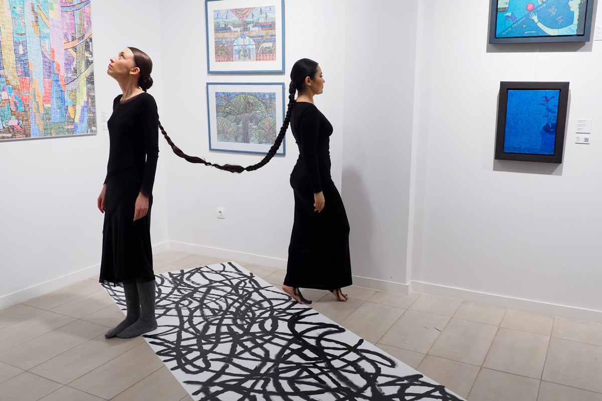В итоге выставка «М7 и новые кочевники» разрослась до 83 работ, и это мы еще треть не уместили. Причем это такие самые-самые художники, известные, реализовавшиеся. Но, что интересно, они в таком составе никогда не выставлялись ни на одной площадке. Даже «Тамга» и «Чингисхан» — это две разные группы, которые не смешиваются. А тут мы увидим их на одной площадке. И рядом — цифровое искусство, ведь современные проблемы требуют современных решений. Это мы увидим в работах Нелли Акчуриной и Айдара Закирова.
