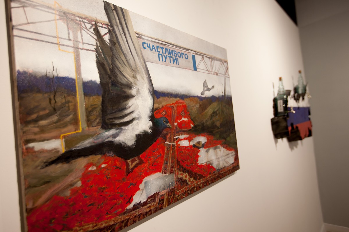 Инсталляция «Социальный мост» наглядно демонстрирует нам, как российские символы могут объединять людей из самых разных слоев. Здесь же голубь вычерчивает границы страны, которые выходят крайне условными, ведь однажды в Кремле было сказано: «Границы России нигде не заканчиваются». Дороги как по волшебству превращаются в ковры, коммунальщики собирают в ассенизаторскую машину звезды, тела любителей выпить изящно адаптируются к резким пикам биржевых индексов, а следователь, который поджидает за дверью, носит уютную фамилию «Родной». Возможно, где-то в этих узнаваемых и остроумных сценах из российской действительности и кроется тот самый «Святой Грааль» с ответом на вопрос об особой «русской миссии». У каждого зрителя есть возможность приблизиться к разгадке этой тайны, ведь, как справедливо отмечает автор, россиян объединяют сильные визуальные символы – именно они заставляют тех, кто по разным причинам уехал, ощущать ностальгию по дому.