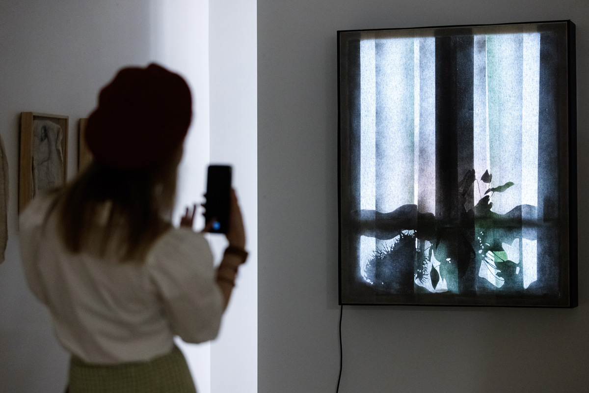 — У Ани часто работы посвящены именно трансляции тревог, сомнений, рассуждений, рефлексии, спокойствия и мечтаний. Анна строит сюжеты вокруг своих воспоминаний и показывает, как прошлое определяет будущее. В Казани представлено несколько работ из серии Home и, в частности, окна и ширма. Когда мы с Аней обсуждали работы, она поделилась своими детскими воспоминаниями: в комнате, где она спала, в доме у бабушки на окне стояло много цветов и висели шторы. В тенях, которые отбрасывали растения, маленькая Аня видела различных персонажей, страшные тени подкрадывались к ней, и пространство дома, где она обитала и росла, наполнялось ужасами. И это тоже про безопасность.