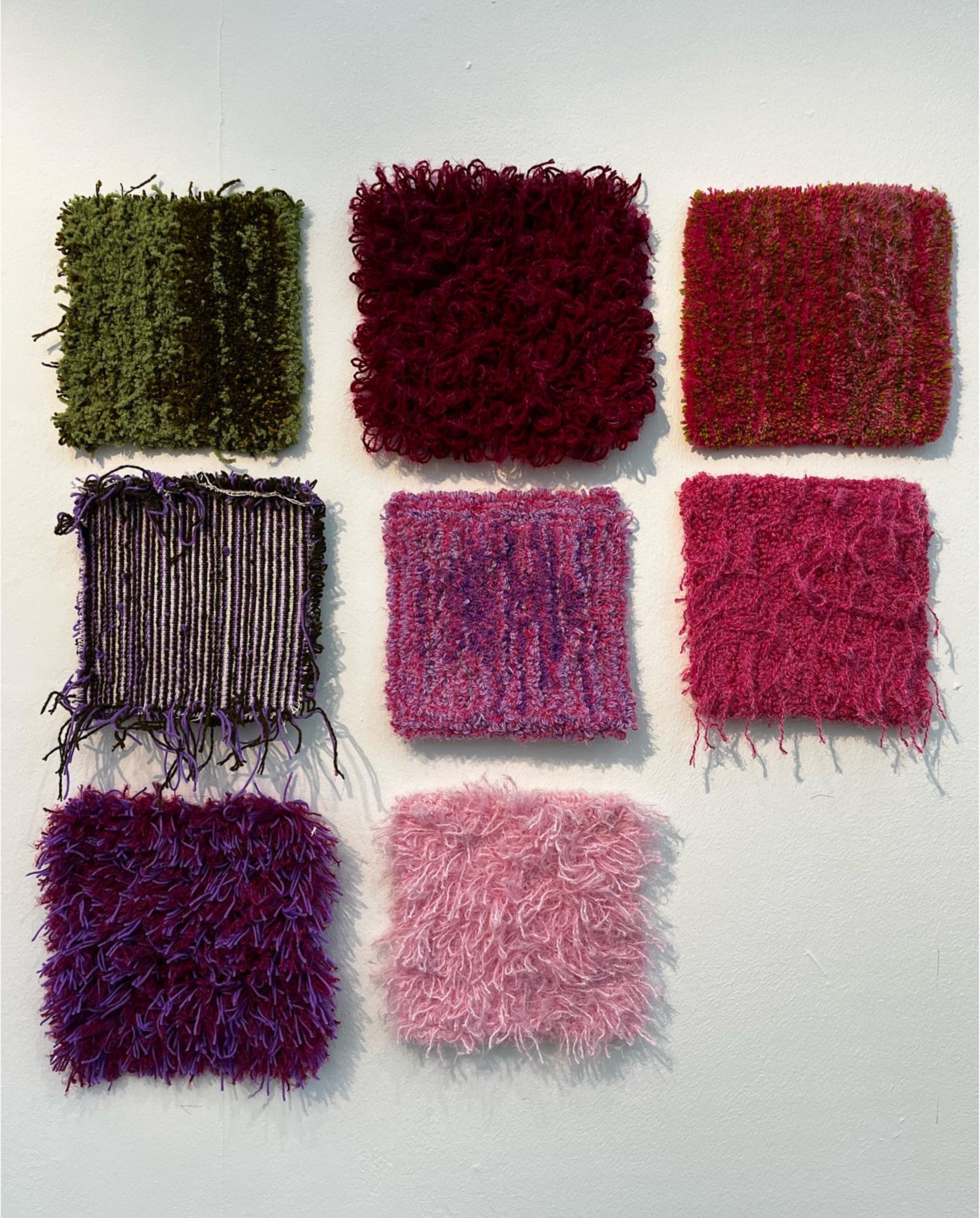 смешанная техника, петельный и стриженный ворс, акриловая, шерстяная, полиакриловая, пластиковая пряжа, 20х20 см один квадрат, 2023