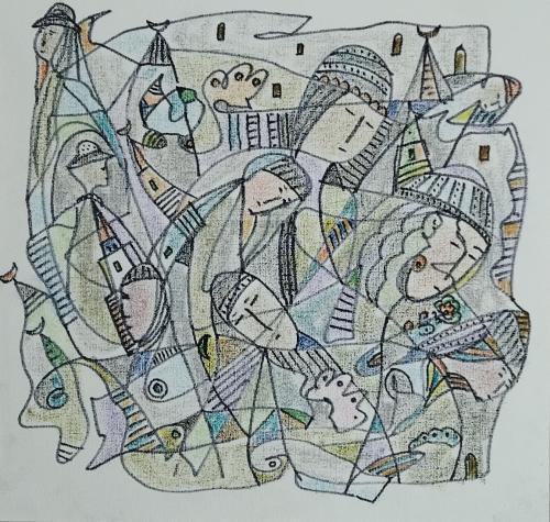 бумага, маркер, масляная пастель, 42х44, 2021