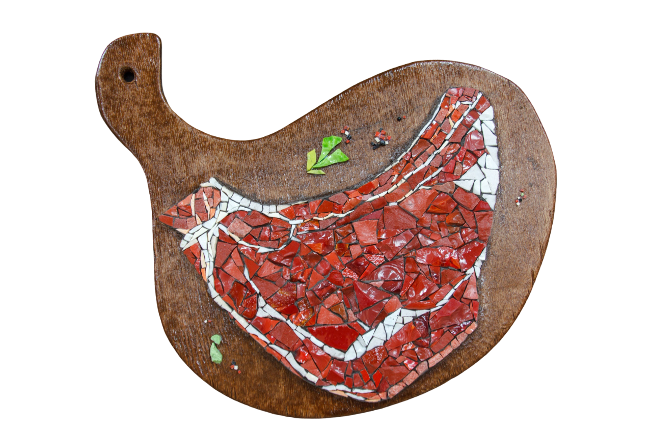скульптура с мозаикой из кирпичных черепков (кирпич, дерево, папье-маше), 61х25х46, 2018