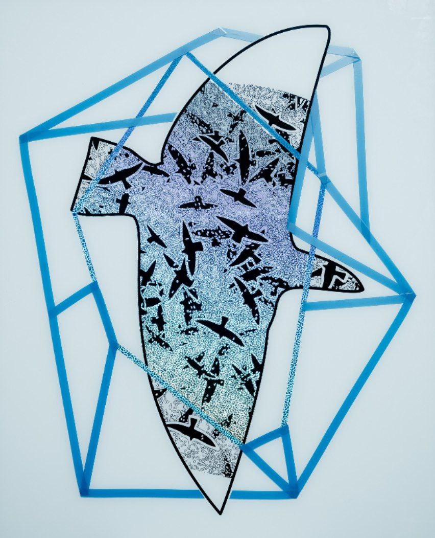 стекло, маркер, фольга, пленка, 100х80, 2023