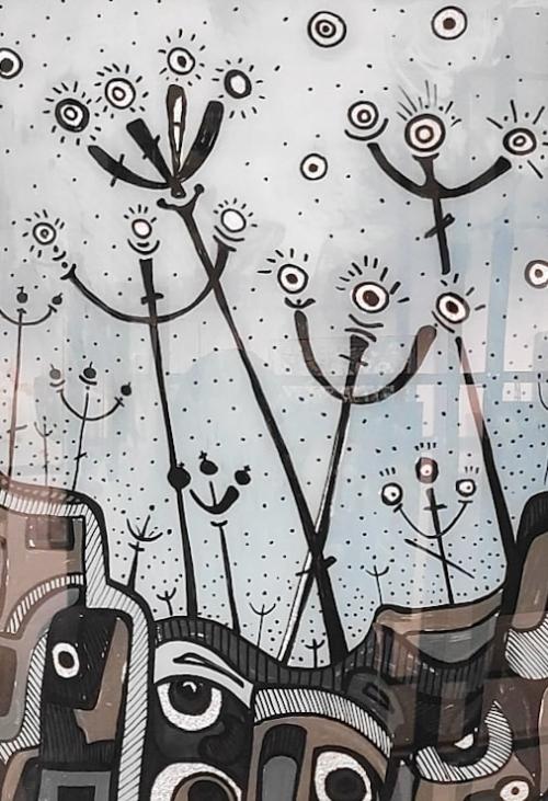 стекло, тушь, темпера, фольга, 66х55, 2016