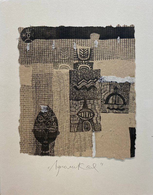 бумага авторского литья, смешанная техника, линогравюра, шинкале, 32,5х38,5, 2012