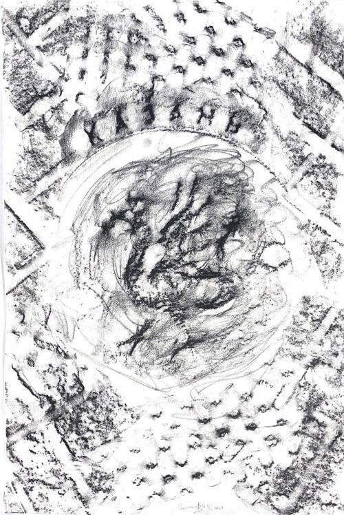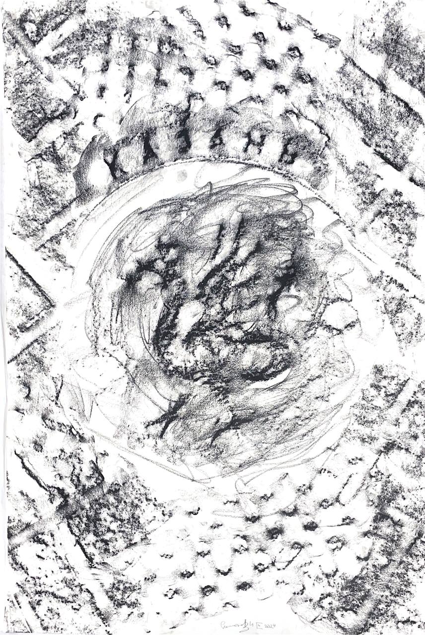 деревянное корыто, акрил, нитка, 77х37, 2024