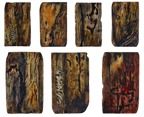 дерево, береста, эмаль, авторская техника, D80, 2021 двусторонний триптих