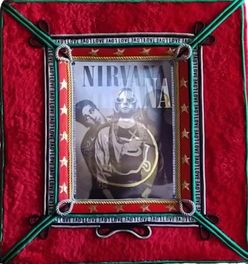ткань, пластик, дерево, вариативная печать, стразы, 70х65, 2024
