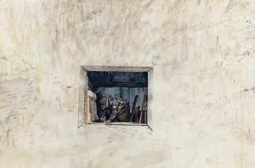 бумага, масло, акварель, чернила, плёнка, 84.5×54.5, 2024