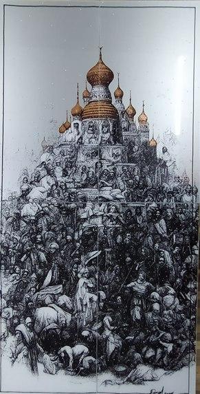 стекло, тушь, маркер, сусальное золото, пластик, пленка, 200х100, 2024