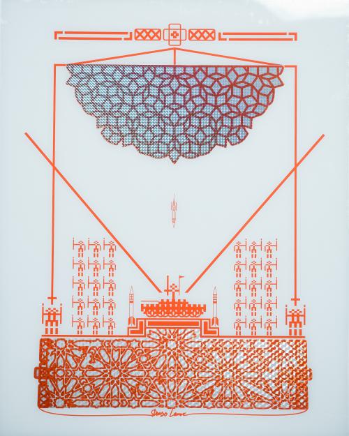 стекло, маркер, фольга, пленка, 100х80, 2023