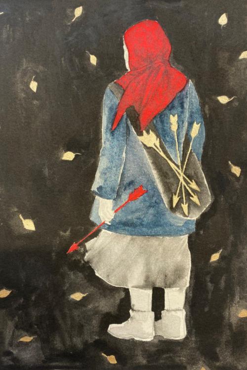 бумага, акварель, тушь белая, карандаш угольный, 20х14, 2024