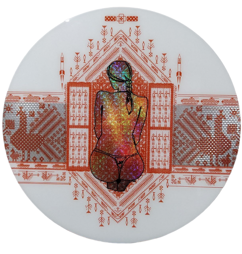 стекло, векторная графика, маркер, голографическая фольга, Д100, 2023