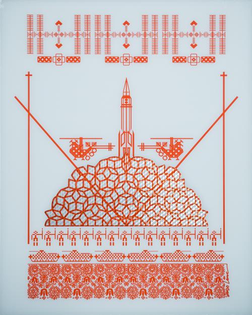 стекло, маркер, фольга, пленка, 100х80, 2023