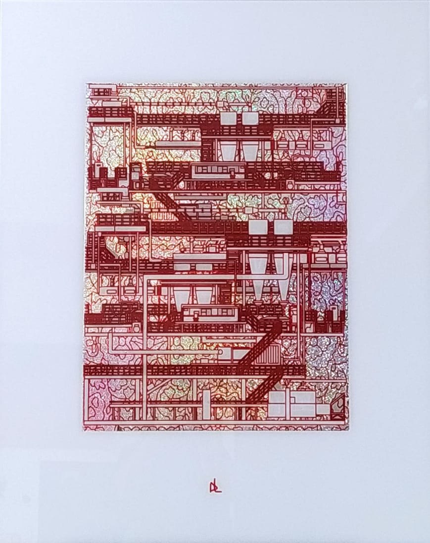 стекло, тушь, маркер, сусальное золото, пластик, пленка, 200х100, 2024