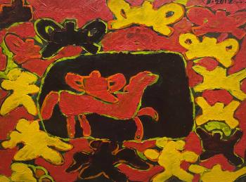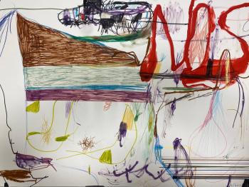 стекло, маркер, фольга, пленка, 100х80, 2023