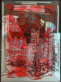 стекло, маркер, фольга, пленка, 100х80, 2023