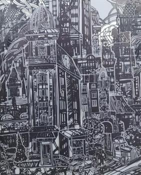 бумага, уголь, сепия, акрил, 50х70, 2022