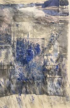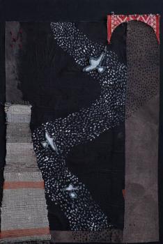 фотопечать по ткани, дорисовка, вышивка, двухслойный коллаж, 20х35, 2023