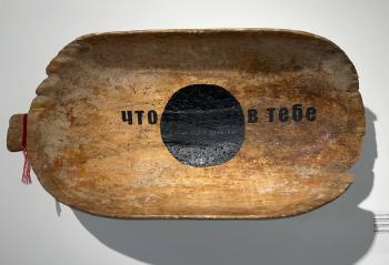 деревянное корыто, акрил, нитка, 77х37, 2024