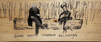 дерево, уголь, коллаж, лак, 72х31, 2024